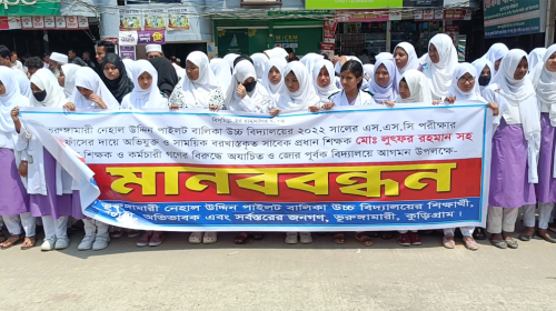 কুড়িগ্রামে প্রশ্নফাঁসের সাথে জড়িত শিক্ষকদের পুনর্বহালের প্রতিবাদে বিক্ষোভ ও মানববন্ধন