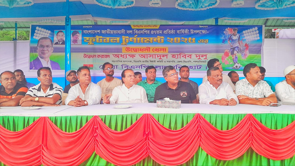 বাংলাদেশ জাতীয়তাবাদী দল-বিএনপির ৪৭তম প্রতিষ্ঠাবার্ষিকী উপলক্ষে লালমনিরহাট জেলা বিএনপির উদ্যোগে “ফুটবল টুর্নামেন্ট ২০২৫” উদ্বোধন করা হয়েছে।