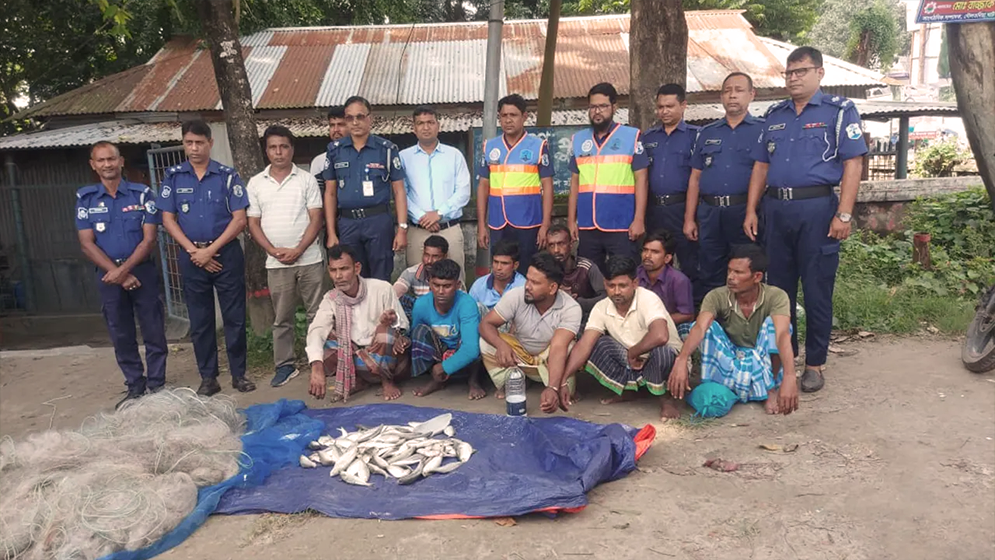 পদ্মায় ইলিশ ধরায় ৯ জেলে গ্রেপ্তার
