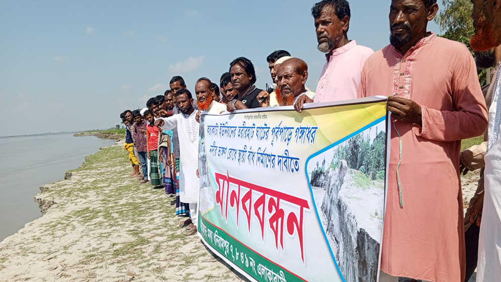 বক্তারা আরও বলেন, নদী ভাঙন এখন এমন পর্যায়ে পৌঁছেছে যে, প্রতিদিন নতুন নতুন এলাকা গঙ্গাধরের গ্রাসে চলে যাচ্ছে। বর্ষা মৌসুম শেষ হলেও ভাঙনের গতি কমেনি। অবিলম্বে পানি উন্নয়ন বোর্ডকে স্থায়ী বাঁধ নির্মাণ ও জরুরি প্রতিরোধ ব্যবস্থা গ্রহণের আহ্বান জানান তারা।