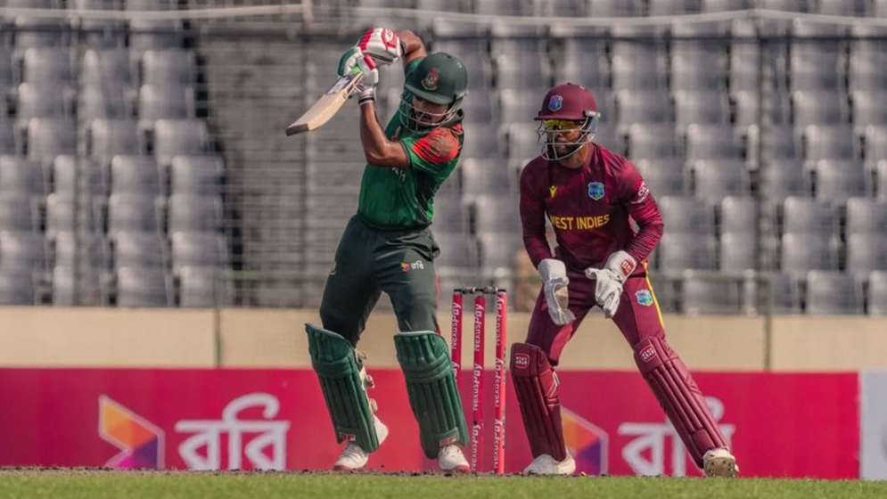 ৫৫ বলে ৪৪ রান করা শান্তকে মনে হচ্ছিল ফিফটিটা পেয়েই যাবেন। তবে ঠিক তখন আলিক এথানেজের অবিশ্বাস্য এক ক্যাচে বিদায় নিতে হয় তাকে। তার ডেলিভারিতে বল আকাশে তুলে দিয়েছিলেন শান্ত। সেখান থেকে পেছনে দৌড়ে এথানেজ দারুণ এক ডাইভে অবিশ্বাস্য ক্যাচ নেন উইন্ডিজ স্পিনার। বাংলাদেশ খুইয়ে বসে তাদের চতুর্থ উইকেট।
