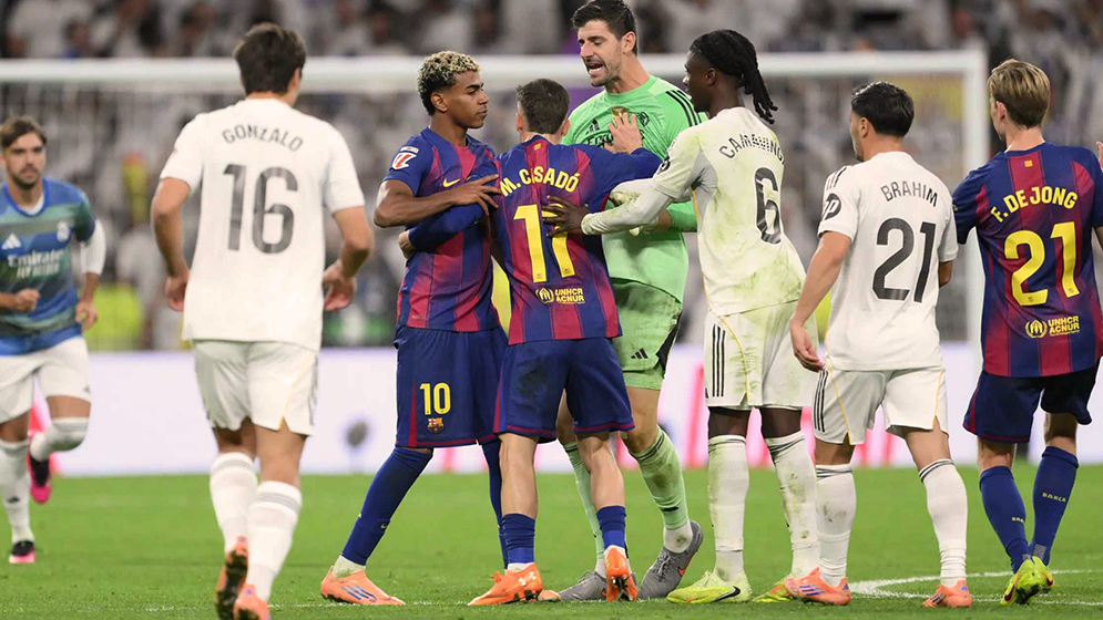 সপ্তাহখানেক আগেই ইয়ামালের মন্তব্য- রিয়াল নাকি “চুরি করে জেতে” ও “সবসময় অভিযোগ করে”, বের্নাবেউর দর্শকদের ক্ষেপিয়ে তোলে। তার নাম ঘোষণার সময় পুরো স্টেডিয়ামজুড়ে শোনা যায় প্রবল উল্লাসধ্বনি ও বিদ্রূপ। বল দখলে বার্সেলোনা কিছুটা এগিয়ে থাকলেও গোলের সুযোগ তৈরি করেছে রিয়ালই। শুরুতেই ভিনিসিয়ুসকে ফাউল করে রিয়ালকে পেনাল্টি উপহার দেন ইয়ামাল, তবে ভিএআর দেখে সিদ্ধান্ত বদলে যায়। রেফারির মতে, সংস্পর্শটা শুরু করেছিলেন ভিনিসিয়ুস নিজেই।