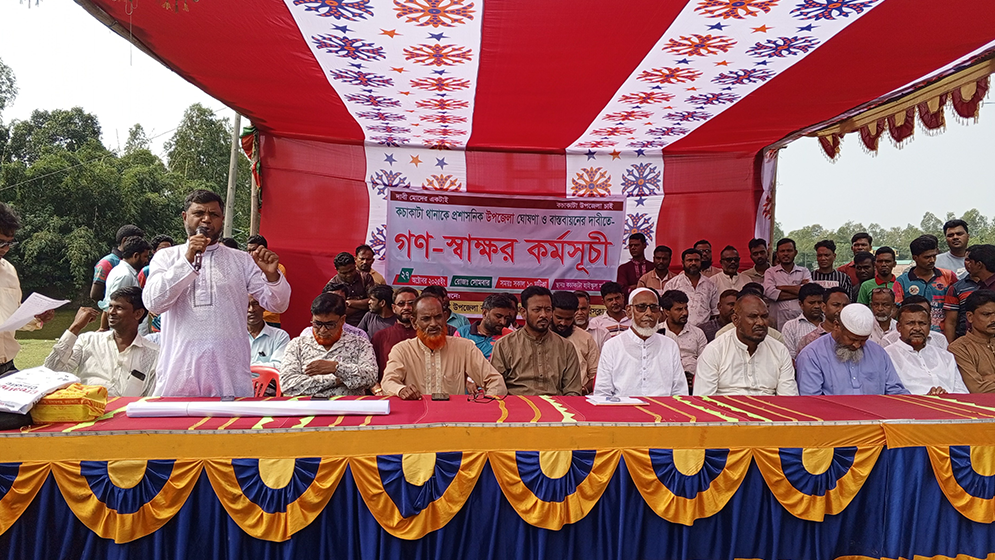 ‎গণস্বাক্ষর কর্মসূচি উপলক্ষে আয়োজিত আলোচনা সভায় সভাপতিত্ব করেন কচাকাটা উপজেলা বাস্তবায়ন সংগ্রাম পরিষদের আহ্বায়ক ও সাবেক চেয়ারম্যান সৈয়দ আহম্মেদ বাচ্চু ব্যাপারী। সভায় প্রধান অতিথি হিসেবে বক্তব্য দেন কেদার ইউনিয়ন পরিষদের চেয়ারম্যান আ.খ.ম ওয়াজিদুল কবীর রাশেদ। বিশেষ অতিথি হিসেবে বক্তব্য রাখেন কচাকাটা ইউনিয়ন পরিষদের চেয়ারম্যান শাহাদৎ হোসেন, বল্লভেরখাস ইউপির ভারপ্রাপ্ত চেয়ারম্যান নূর জামাল হোসেন, সমাজকর্মী আনিসুর রহমান তোলা ব্যাপারীসহ স্থানীয় গণ্যমান্য ব্যক্তিরা।