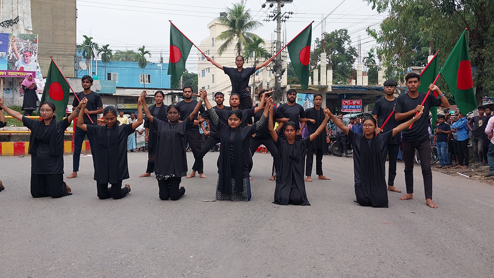 মানববন্ধন শেষে ‘ঝংকার সাংস্কৃতিক সংগঠন’ এর পরিবেশনায় অনুষ্ঠিত হয় একটি প্রতীকী ফ্ল্যাশমব, যেখানে তিস্তা পাড়ের মানুষের দুঃখ, দুর্দশা ও জীবনযাত্রার চিত্র তুলে ধরা হয়।
