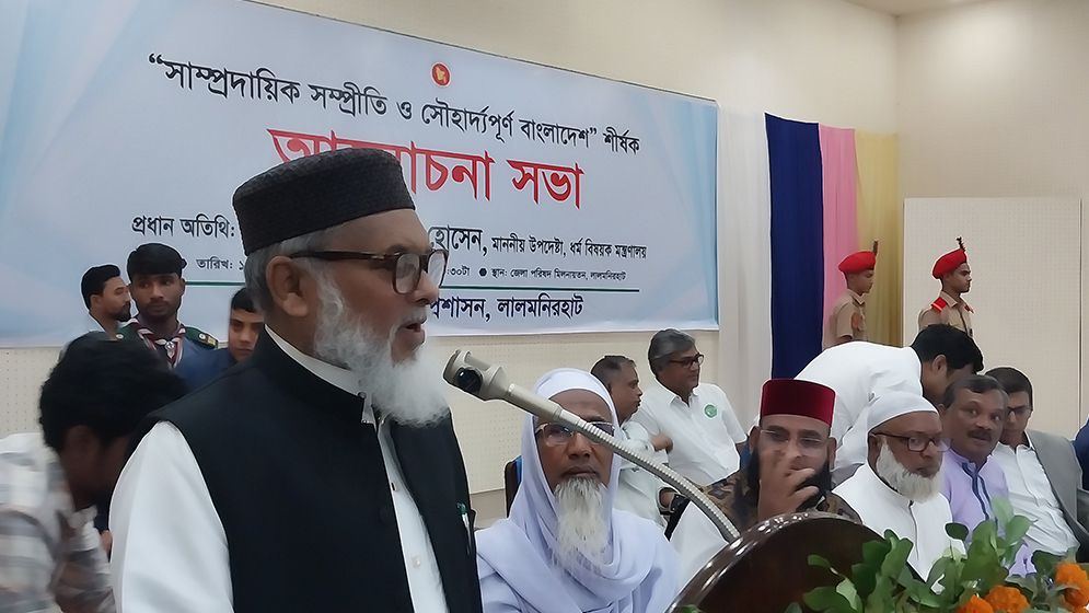 শনিবার (১ নভেম্বর) দুপুরে লালমনিরহাট জেলা পরিষদ মিলনায়তনে “সাম্প্রদায়িক সম্প্রীতি ও সৌহার্দপূর্ণ বাংলাদেশ” শীর্ষক আলোচনা সভায় তিনি এ মন্তব্য করেন।