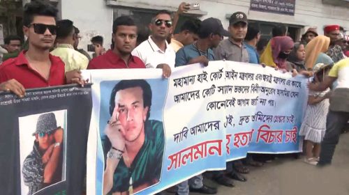 মানবন্ধনে উপস্থিত ভক্তরা সালমান হত্যার সঠিক বিচার এবং আসামীদের দ্রুত বিচারের দাবি জানান।