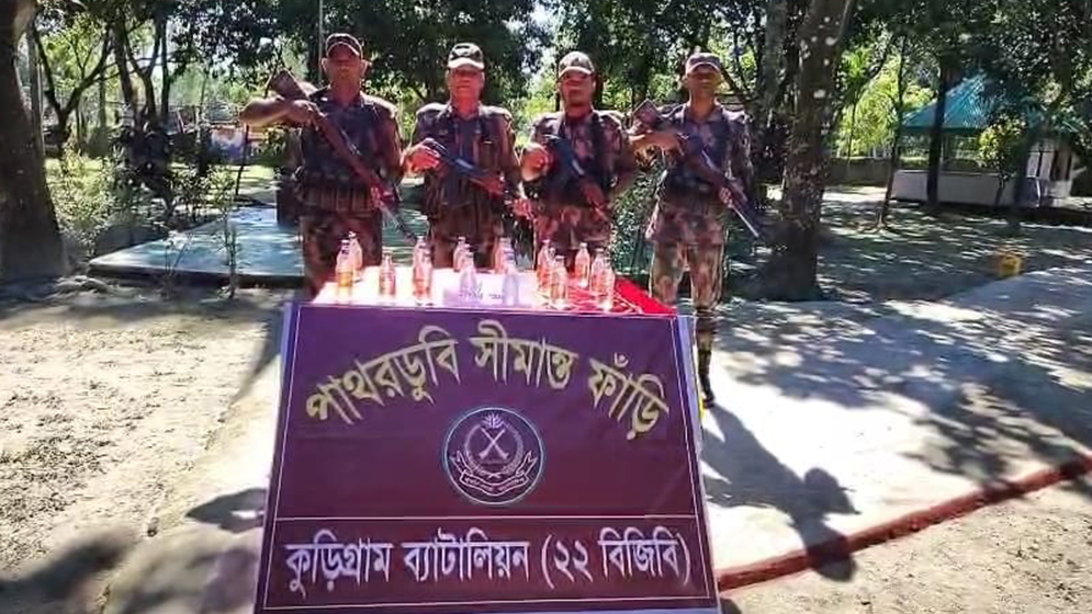 কুড়িগ্রাম সীমান্তে বিজিবির অভিযানে বিপুল পরিমাণে মদ-ইয়াবা জব্দ