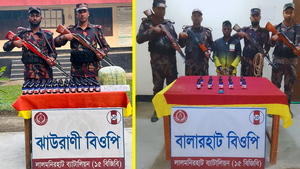 অপরদিকে, ২২ নভেম্বর ভোর ৬টায় লালমনিরহাটের হাতিবান্ধা থানার খামারভাতী এলাকায় ঝাউরানী বিওপি’র টহলদল চোরাকারবারীদের ধাওয়া করলে তারা মালামাল ফেলে সীমান্ত অতিক্রম করে ভারতের ভেতরে পালিয়ে যায়। ফেলে যাওয়া মালামাল তল্লাশিতে ভারতীয় গাঁজা ৫ কেজি এবং ইস্কাফ সিরাপ ১১৭ বোতল উদ্ধার করা হয়।