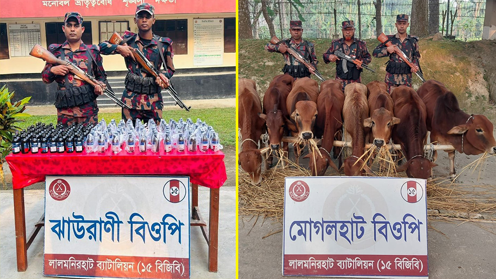 লালমনিরহাট ব্যাটালিয়ন (১৫ বিজিবি) তাদের দায়িত্বপূর্ণ সীমান্ত এলাকায় বিশেষ অভিযান পরিচালনা করে ৯টি ভারতীয় গরু, ১৬৯ বোতল ইস্কাফ সিরাপ, ৬৭ বোতল ফেন্সিডিল ও ১৫ কেজি ভারতীয় গাঁজা জব্দ করেছে। এই অভিযানগুলো ২৩ ও ২৪ নভেম্বর বিভিন্ন বিওপির টহলদল দ্বারা পরিচালিত হয়।