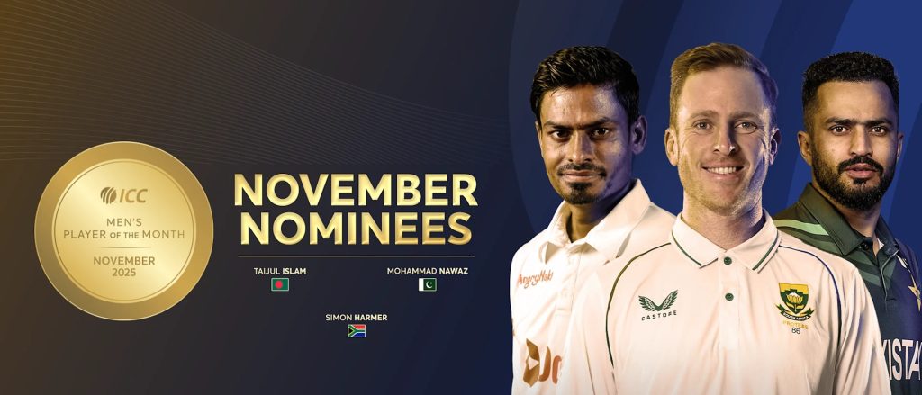 নভেম্বর মাসে আইসিসির সেরা ক্রিকেটার নির্বাচিত হওয়ার জন্য জন্য মনোনীত হয়েছেন তাইজুল ইসলাম। বাংলাদেশি স্পিনারের সঙ্গে মাসসেরা ক্রিকেটার হওয়ার দৌড়ে আরও আছেন দক্ষিণ আফ্রিকার সাইমন হার্মার ও পাকিস্তানের মোহাম্মদ নওয়াজ।