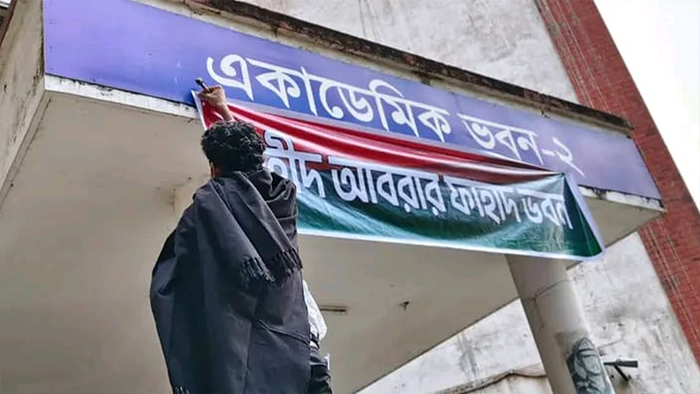 এ সময় একাউন্টিং অ্যান্ড ইনফরমেশন সিস্টেমস বিভাগের শিক্ষার্থী আহমাদুল হক আলবীর বলেন, বিশ্ববিদ্যালয় কেবল ডিগ্রি অর্জনের স্থান নয়। এখান থেকেই ন্যায়, প্রতিবাদ ও মানবিকতার শিক্ষা ছড়িয়ে পড়ে। ভবনের নামকরণের মাধ্যমে আমরা ভবিষ্যৎ প্রজন্মের কাছে সেই বার্তাই পৌঁছে দিতে চেয়েছি।