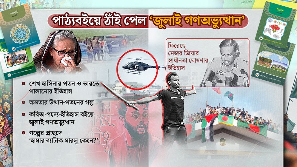 মাধ্যমিক শিক্ষাক্রমে এবার যুক্ত হয়েছে বাংলাদেশের সাম্প্রতিক ইতিহাসের সবচেয়ে আলোচিত অধ্যায় ‘২০২৪ সালের জুলাই গণঅভ্যুত্থান’। নতুন পাঠ্যবইগুলোতে ঠাঁই পেয়েছে কোটা সংস্কার আন্দোলন দমন করতে আইনশৃঙ্খলা বাহিনী কর্তৃক হেলিকপ্টার থেকে গুলিবর্ষণ এবং ছাত্রলীগ-যুবলীগের হামলা ও ফ্যাসিস্ট শেখ হাসনিার পতনসহ নানা বিষয়। একই সঙ্গে বইয়ের পাতায় ফিরেছে মেজর জিয়াউর রহমানের স্বাধীনতা ঘোষণার ইতিহাস।