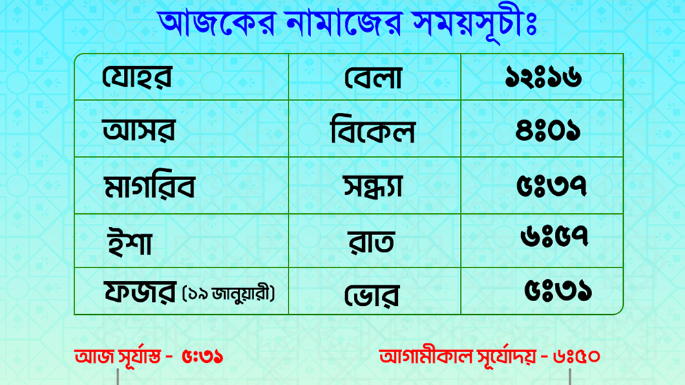আগামীকাল ফজরের নামাজ শুরু হবে ভোর ৫টা ৩১ মিনিটে।
