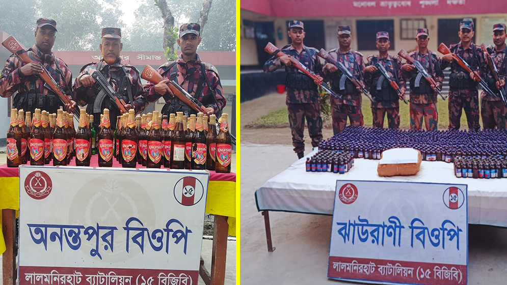 এছাড়া একই দিন রাত আনুমানিক সাড়ে ৮টার দিকে অনন্তপুর বিওপির আওতাধীন কুড়িগ্রামের ফুলবাড়ী উপজেলার ভেন্নিরতল এলাকায় টহলকালে চোরাকারবারীদের গতিবিধি টের পেয়ে তাদের চ্যালেঞ্জ করা হয়। এ সময় চোরাকারবারীরা সঙ্গে থাকা মালামাল ফেলে সীমান্ত অতিক্রম করে ভারতের অভ্যন্তরে পালিয়ে যায়। পরে ফেলে যাওয়া মালামাল তল্লাশি করে ৪৭ বোতল ভারতীয় কিং ফিশার মদ এবং ৬ বোতল টুবর্গ বিয়ার জব্দ করা হয়।
