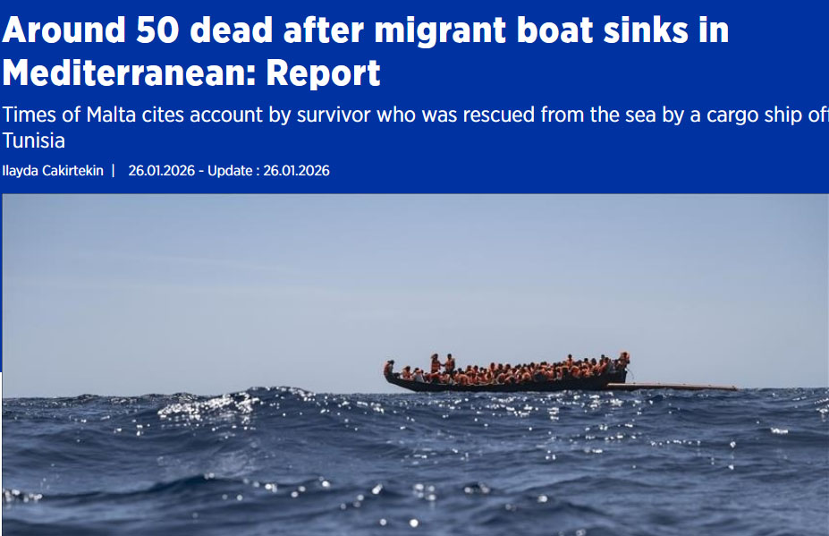 ভূমধ্য সাগরে নৌকা ডুবে অর্ধশত শরণার্থী নিহত হয়েছে। রোববার মাল্টার একটি পত্রিকা প্রাণে বেঁচে যাওয়া এক যাত্রীর বরাত দিয়ে এ খবর প্রকাশ করেছে।