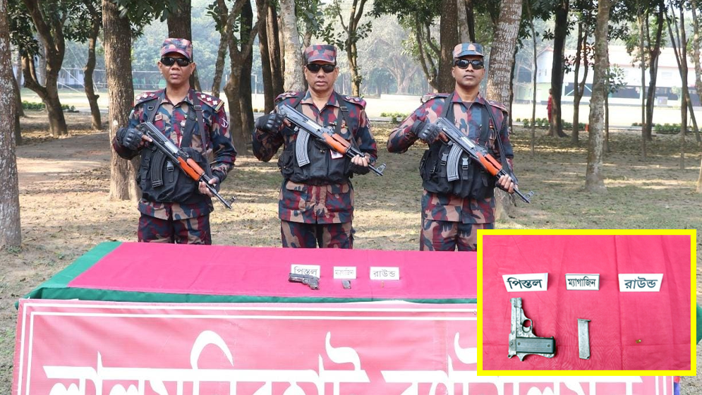 অভিযানকালে পলিথিনে মোড়ানো অবস্থায় ইউএসএ তৈরি একটি বিদেশি পিস্তল, একটি ম্যাগাজিন ও এক রাউন্ড গুলি উদ্ধার করা হয়। তবে এ ঘটনায় কাউকে আটক করা সম্ভব হয়নি। উদ্ধারকৃত অস্ত্র ও গোলাবারুদ আইনানুগ ব্যবস্থা গ্রহণের জন্য লালমনিরহাট সদর থানায় জমা দেওয়ার প্রক্রিয়া চলছে।