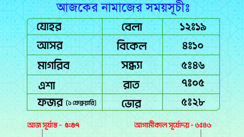 নামাজের সময়সূচি – ৩১ জানুয়ারি ২০২৬