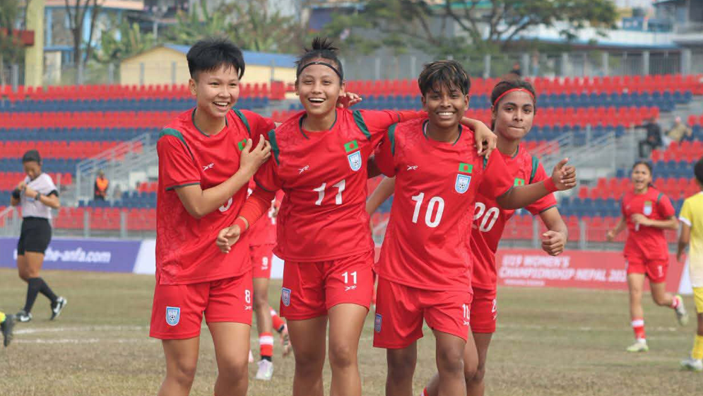 নেপালের পোখরায় সাফ অনূর্ধ্ব-১৯ নারী চ্যাম্পিয়নশিপে বাংলাদেশ দুর্দান্ত সূচনা করেছে। টুর্নামেন্টের উদ্বোধনী ম্যাচে ১২-০ গোলে ভুটানকে হারিয়েছে তারা। মুনকি আক্তার সর্বোচ্চ চার গোল করেন, আলপি আক্তার ও তৃষ্ণা রাণী করেন হ্যাটট্রিক এবং মামনি ও অধিনায়ক অর্পিতা একটি করে গোল করেন।