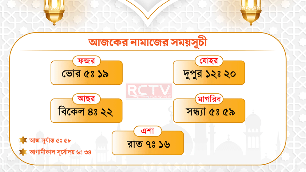 মাগরিবের নামাজ পড়তে হবে সন্ধ্যা ৫টা ৫৯ মিনিটে।