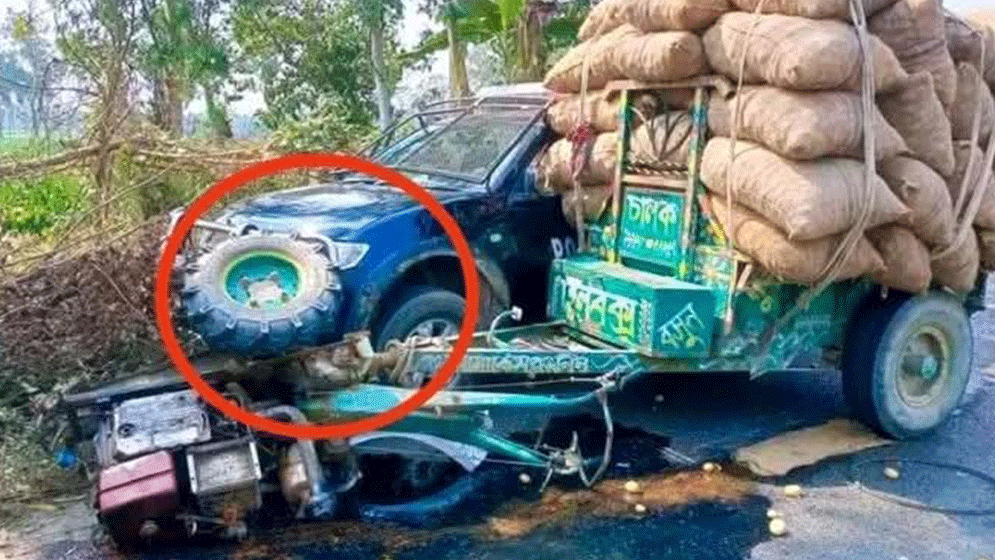 ঠাকুরগাঁও বালিয়াডাঙ্গী উপজেলার কালমেঘ এলাকায় পুলিশের পিকাপের উপর আলু বস্তা ভর্তি পাওয়ার টিলার সংঘর্ষ।