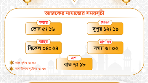 আগামীকাল ফজরের নামাজ শুরু হবে ভোর ৫টা ১৬ মিনিটে।