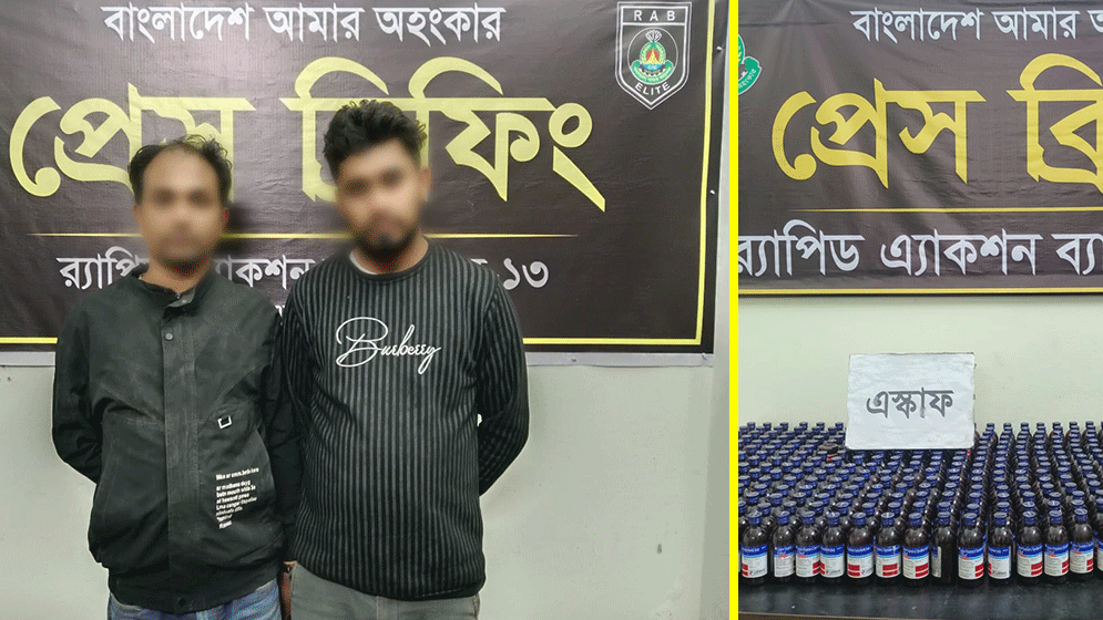 র্যাব জানায়, গোপন সংবাদের ভিত্তিতে ২৪ ফেব্রুয়ারি রাত ১টার দিকে কালিগঞ্জ উপজেলার কাকিনা ইউনিয়নের রুদ্রেশ্বর এলাকায় অভিযান চালানো হয়। এ সময় একটি প্রাইভেটকার তল্লাশি করে ৩৪১ বোতল এস্কাফ, ২ বোতল এস্কাফ ডিএক্স ও ৯৯ বোতল ফেয়ারডিল জব্দ করা হয়। অভিযানে ব্যবহৃত প্রাইভেটকারটিও জব্দ করা হয়েছে।