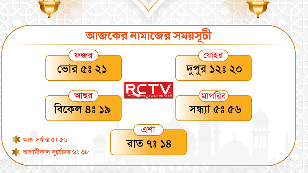 মাগরিবের নামাজ পড়তে হবে সন্ধ্যা ৫টা ৫৬ মিনিটে।