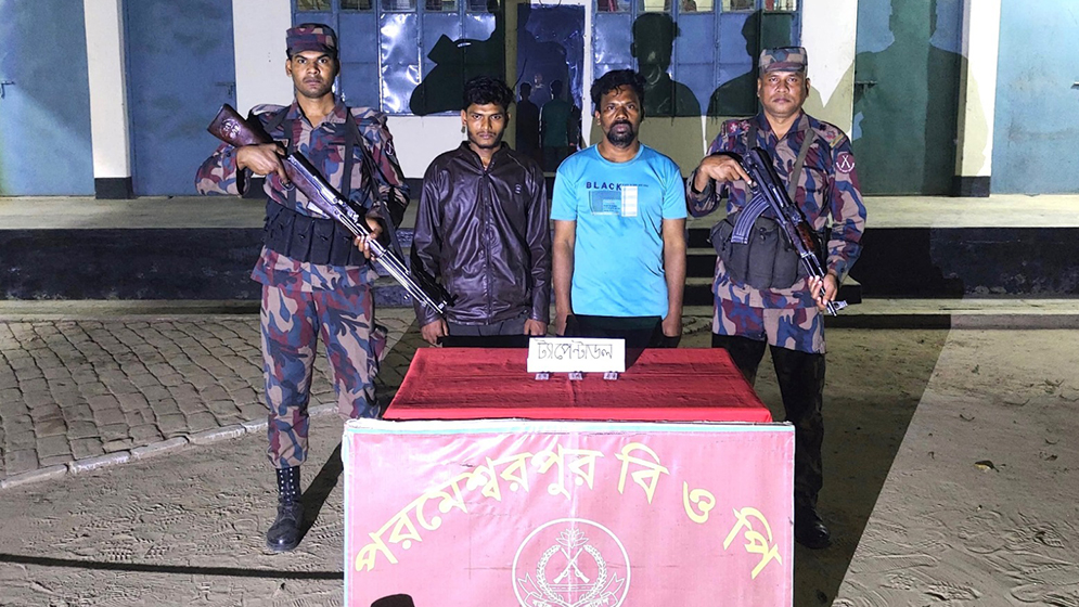 আটককৃতরা হলেন মাহেরপুর গ্রামের রেজাউল ইসলাম রনি (৩০), একই গ্রামের শ্রী রতন রায় (২০), পিতা জগদীশ রায়।