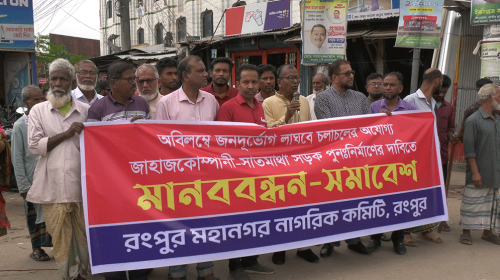 জাহাজকোম্পানী-সাতমাথা সড়ক পুনঃনির্মাণের দাবিতে রংপুর মহানগর নাগরিক কমিটির মানববন্ধন
