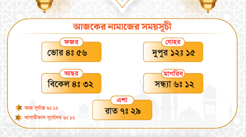 আগামীকাল ফজরের নামাজ শুরু হবে ভোর ৪টা ৫৬ মিনিটে।