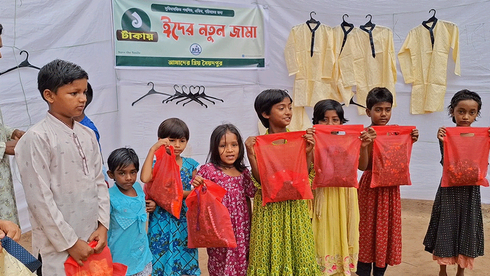 উল্লেখ্য, প্রতি বছর ঈদকে সামনে রেখে সুবিধাবঞ্চিত শিশুদের জন্য নতুন জামা, সালামি এবং দরিদ্র মানুষের জন্য বিভিন্ন সহায়তা দিয়ে আসছে স্বেচ্ছাসেবী সংগঠন ‘আমাদের প্রিয় সৈয়দপুর’। মানবিক এই উদ্যোগে ঈদের আনন্দ এবার ছড়িয়ে পড়েছে সৈয়দপুরের অসংখ্য শিশুর মুখে।
