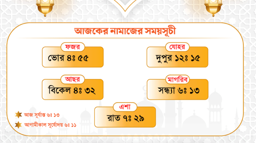 নামাজের সময়সূচি – ১৬ মার্চ ২০২৬