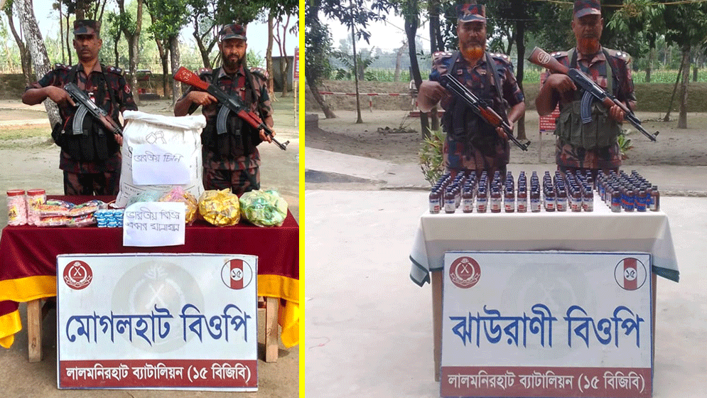 বিজিবি সূত্রে জানা যায়, গোপন সংবাদের ভিত্তিতে চোরাকারবারীরা সীমান্ত দিয়ে মাদক ও বিভিন্ন পণ্য চোরাচালানের চেষ্টা করছে এমন তথ্য পেয়ে ঝাউরানী ও মোগলহাট বিওপির টহলদল পৃথক দুটি অভিযান পরিচালনা করে।