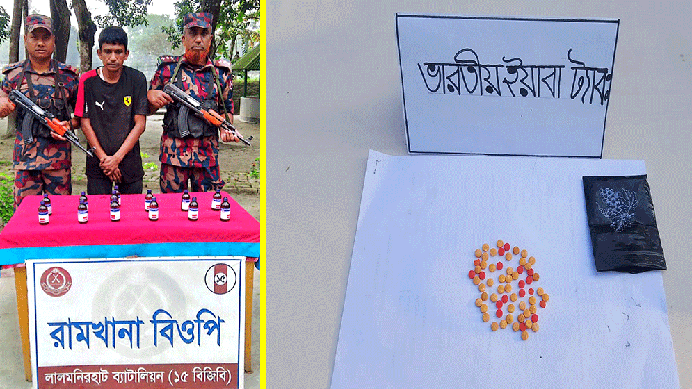 লালমনিরহাট ব্যাটালিয়ন (১৫ বিজিবি) এর মাদকবিরোধী বিশেষ অভিযানে ভারতীয় ইস্কাফ সিরাপসহ এক ব্যক্তিকে আটক করা হয়েছে। একই সঙ্গে বিপুল পরিমাণ ফেয়ারডিল সিরাপ ও ইয়াবা ট্যাবলেট জব্দ করেছে বিজিবি।