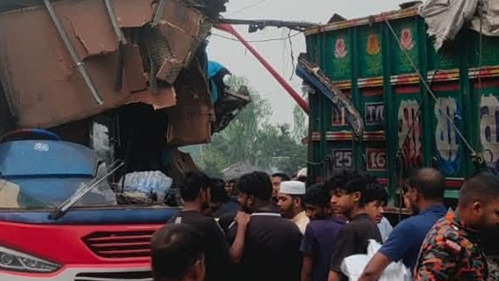 পুলিশ ও স্থানীয় সূত্রে জানা যায়, সড়কের পাশে দাঁড়িয়ে থাকা একটি ট্রাককে পঞ্চগড় থেকে ঢাকাগামী ‘হেরিটেজ ট্রাভেলস’ নামের একটি যাত্রীবাহী বাস সজোরে ধাক্কা দেয়। এতে ঘটনাস্থলেই বাসের হেলপার ও এক যাত্রী নিহত হন। দুর্ঘটনায় বাস ও ট্রাকের সামনের অংশ দুমড়ে-মুচড়ে যায়।