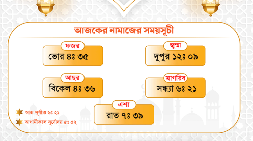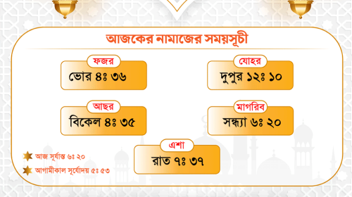 আগামীকাল ফজরের নামাজ শুরু হবে ভোর ৪টা ৩২ মিনিটে।