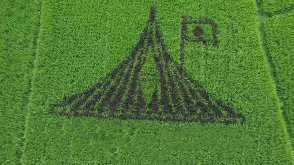 কুড়িগ্রামে ধানক্ষেতে জাতীয় স্মৃতিসৌধের নকশা