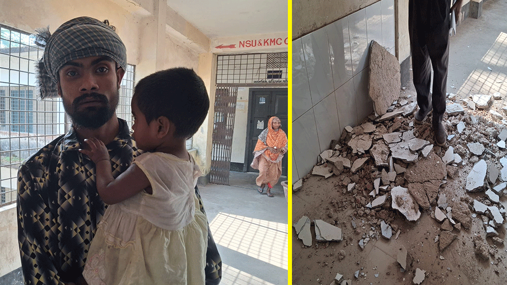 ভেঙে পড়ল কুড়িগ্রামে স্বাস্থ্য কমপ্লেক্সের ছাদ, অল্পের জন্য প্রাণ রক্ষা