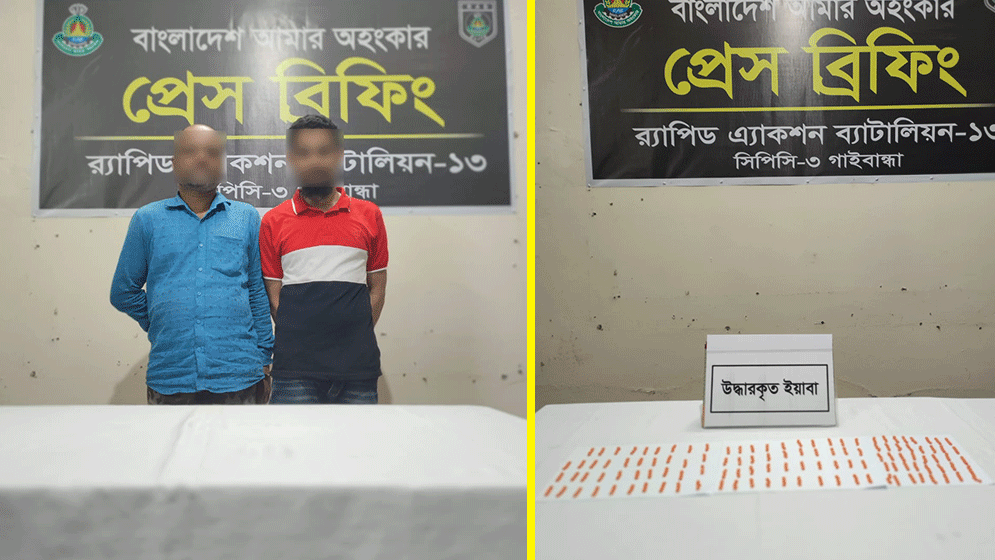 গাইবান্ধার গোবিন্দগঞ্জে র্যাব-১৩ এর অভিযানে ৫৯৫ পিস ইয়াবা ট্যাবলেট এবং নগদ ৭২ হাজার টাকাসহ দুই মাদক ব্যবসায়ীকে গ্রেফতার করা হয়েছে।