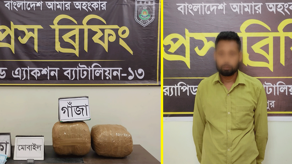 র্যাব সূত্রে জানা যায়, মাদকবিরোধী চলমান অভিযানের অংশ হিসেবে বুধবার (০৮ এপ্রিল ২০২৬) সকাল ৬টা ৩০ মিনিটে র্যাব-১৩, সদর কোম্পানি, রংপুরের একটি আভিযানিক দল গোপন সংবাদের ভিত্তিতে কালীগঞ্জ থানার চন্দ্রপুর ইউনিয়নের ৭নং ওয়ার্ডের চন্দ্রপুর গ্রামে অভিযান পরিচালনা করে। এ সময় মোঃ মজিদুল ইসলাম (৩২) নামের এক মাদক ব্যবসায়ীর বসতবাড়ির উত্তর দিকের কক্ষ থেকে ৯.২ কেজি গাঁজা উদ্ধার করা হয় এবং তাকে গ্রেফতার করা হয়।