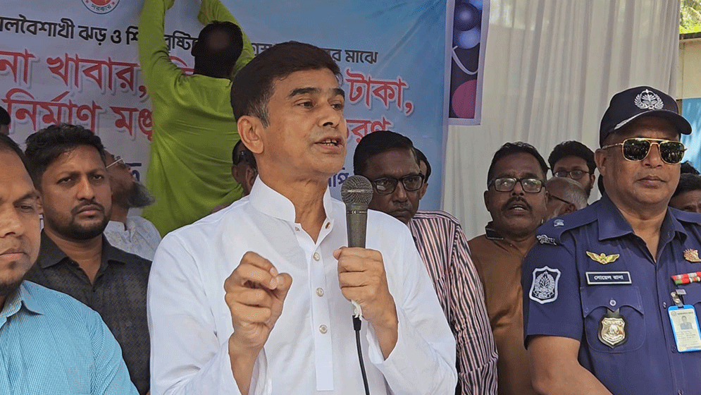 তিনি আরো বলেন, সাম্প্রতিক কালবৈশাখী ঝড়, শিলাবৃষ্টি যখন কোনো দল বুঝে নাই, কোনো ধর্ম বুঝে নাই, আমি আশা করব আমাদের এই যে প্রধানমন্ত্রীর পক্ষ থেকে আমরা যে আমাদের এই অঞ্চলের ক্ষতিগ্রস্ত মানুষদের যে ত্রাণ সহায়তা করা হবে, সেখানেও কোন দলীয় দৃষ্টিভঙ্গ থেকে কাউকে বিচার করা হবে না। যারা পাওয়ার যোগ্য, যারা ক্ষতিগ্রস্ত সেই মানুষটাই যেন আমাদের এই সামগ্রীটা পেয়ে উপকৃত হতে পারে।
