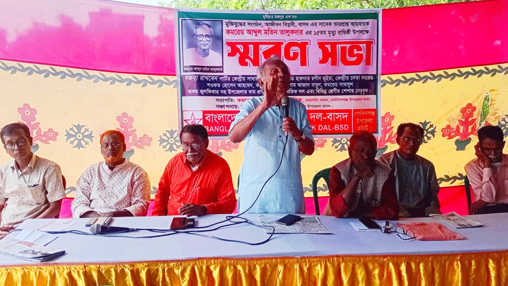 বাংলাদেশের সমাজতান্ত্রিক দল বাসদ এর কেন্দ্রীয় ভারপ্রাপ্ত আহ্বায়ক, গোবিন্দগঞ্জের কৃতি সন্তান, বিশিষ্ঠ রাজনীতিবিদ কমরেড আব্দুল মতিন তালুকদারের ১৫ তম মৃত্যু বার্ষিকীর স্মরণ সভা অনুষ্ঠিত।