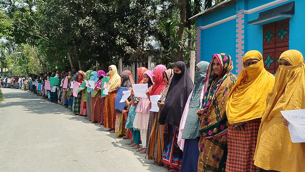 কুড়িগ্রামে মোবাইলে একাধিক বিয়ে নিয়ে তোলপাড় অভিযুক্তের বাড়ির সামনে মানববন্ধন