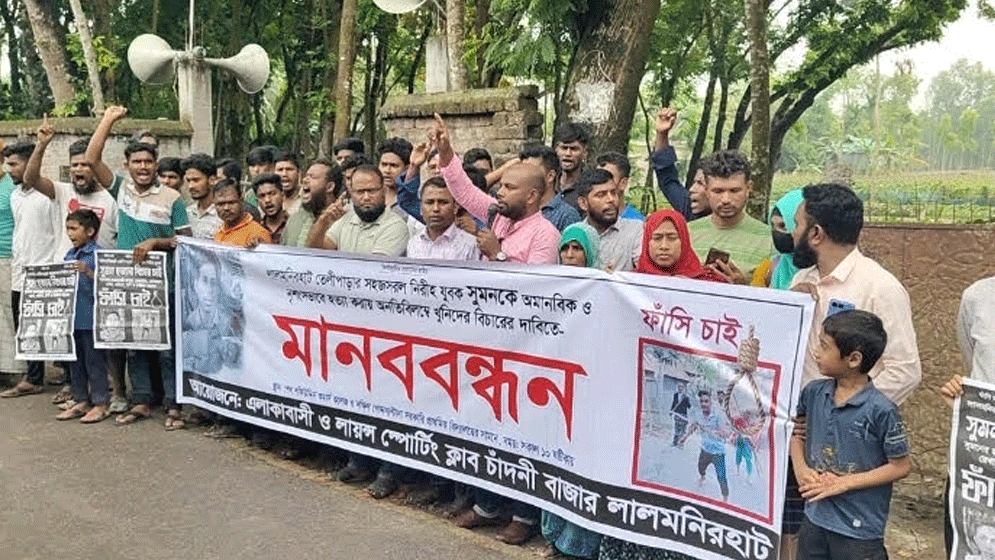 লালমনিরহাট সদর উপজেলার তেলীপাড়া এলাকার সহজ-সরল যুবক সুমনকে অমানবিক ও নৃশংসভাবে হত্যার প্রতিবাদে এবং খুনিদের দ্রুত গ্রেফতার ও দৃষ্টান্তমূলক শাস্তির দাবিতে উত্তাল হয়ে উঠেছে রাজপথ।