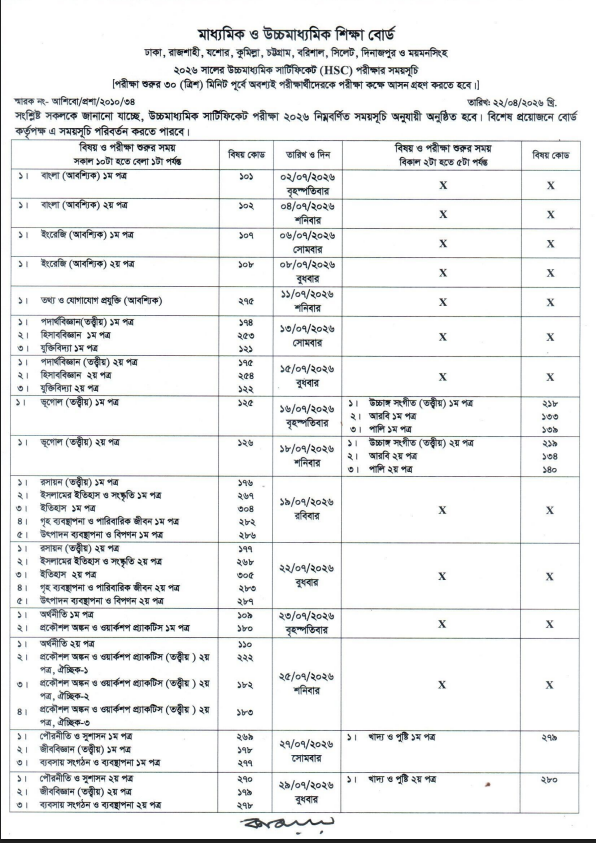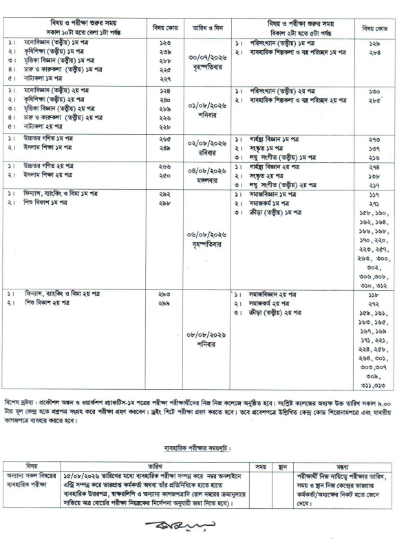 আন্তঃশিক্ষা বোর্ড পরীক্ষা নিয়ন্ত্রক কমিটির আহ্বায়ক এস এম কামাল উদ্দিন হায়দার স্বাক্ষরিত রুটিনে বলা হয়েছে বিশেষ প্রয়োজনে বোর্ড কর্তৃপক্ষ এ সময়সূচি পরিবর্তন করতে পারবে।