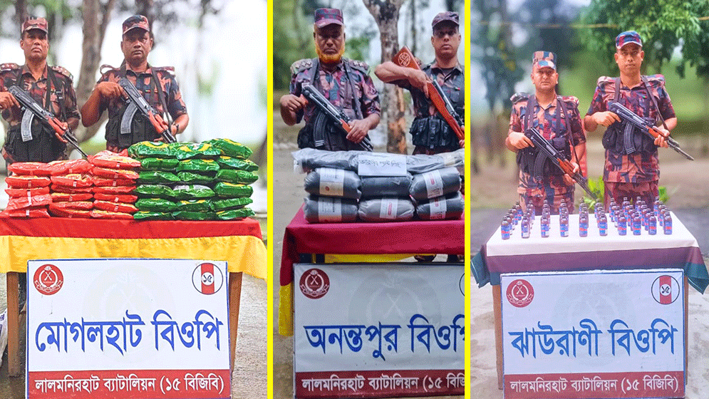 লালমনিরহাট ব্যাটালিয়ন (১৫ বিজিবি) এর দায়িত্বপূর্ণ সীমান্ত এলাকায় চলমান গোয়েন্দা তথ্যভিত্তিক মাদক ও চোরাচালানবিরোধী বিশেষ অভিযানে বিপুল পরিমাণ ভারতীয় মাদকদ্রব্য, জিরা, চিনি, প্যান্টের কাপড় ও বিভিন্ন প্রসাধনী সামগ্রী জব্দ করা হয়েছে।