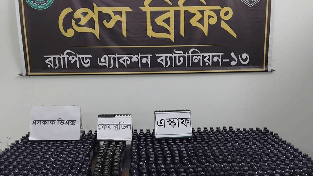 লালমনিরহাটে র‌্যাবের অভিযানে ৬১১ বোতল মাদক জব্দ, গ্রেফতার ৩
