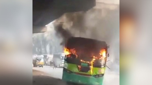 রাজধানীর উত্তরায় পার্কিং করা বাসে আগুন